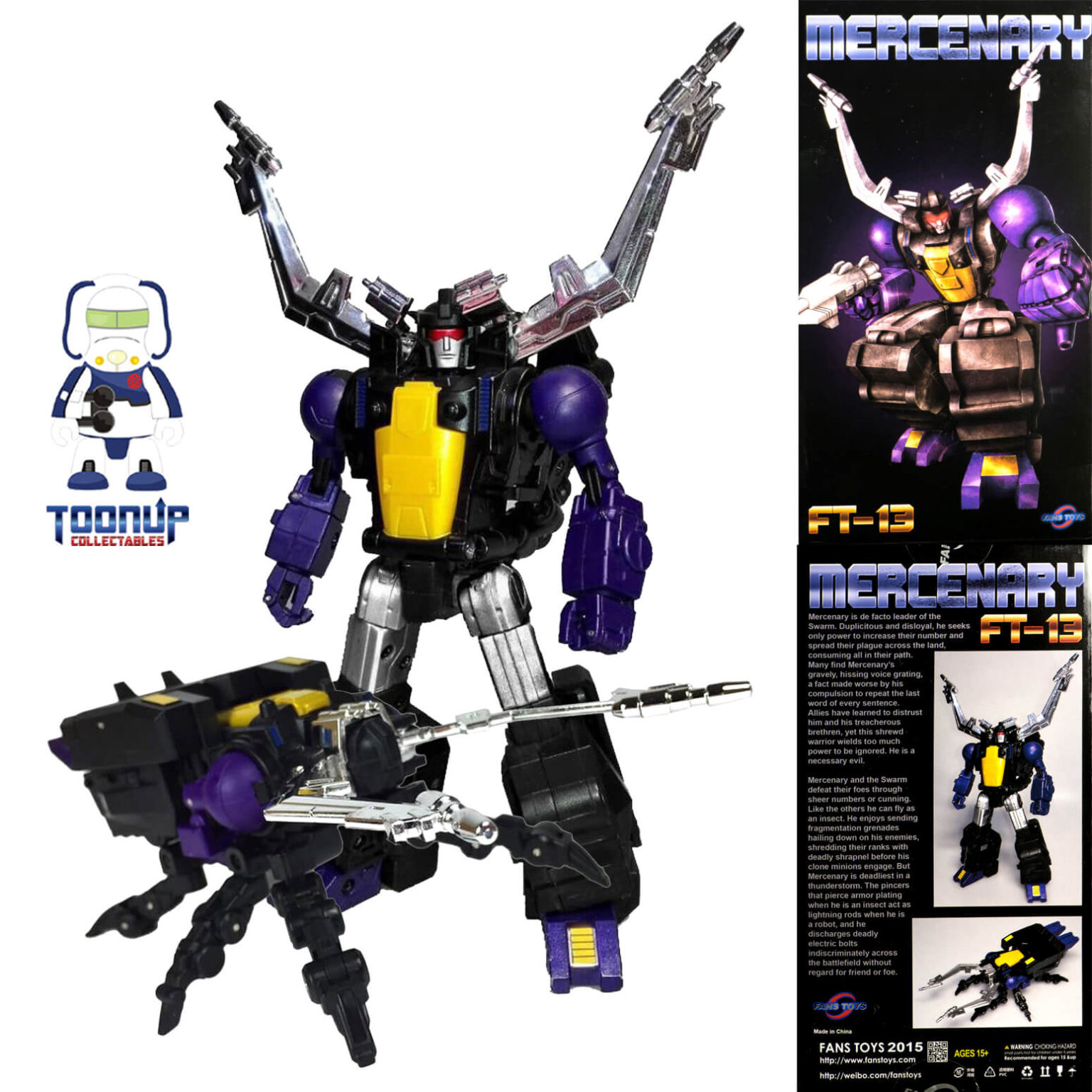 FT-13 Mercenary takes your collection to the next level with this Masterpiece scaled, highly articulated 3rd Party transformable figure. This figure stands 5.6-inches tall in robot mode and transforms from a Insect to robot and back. FT-13 Mercenary is Masterpiece scaled and will scale to other Takara Tomy Transformers Masterpiece series figures, 3rd Party Masterpiece scaled as well as other Fans Toys items already in your collection.