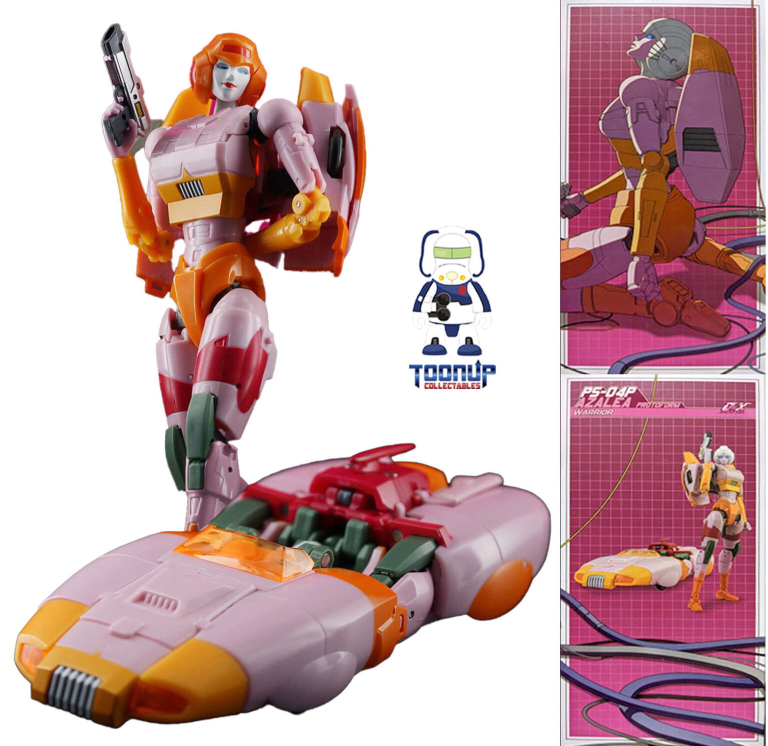 PS-04P Azalea Protoform is a Masterpiece Scale Scaled figure manufactured by Mastermind Creations and part of their Ocular Max sub-brand. PS-04P Azalea Protoform is part of the Perfection Series toyline, she stands 7.1-inches tall and transforms from a robot to Sports Car and back.