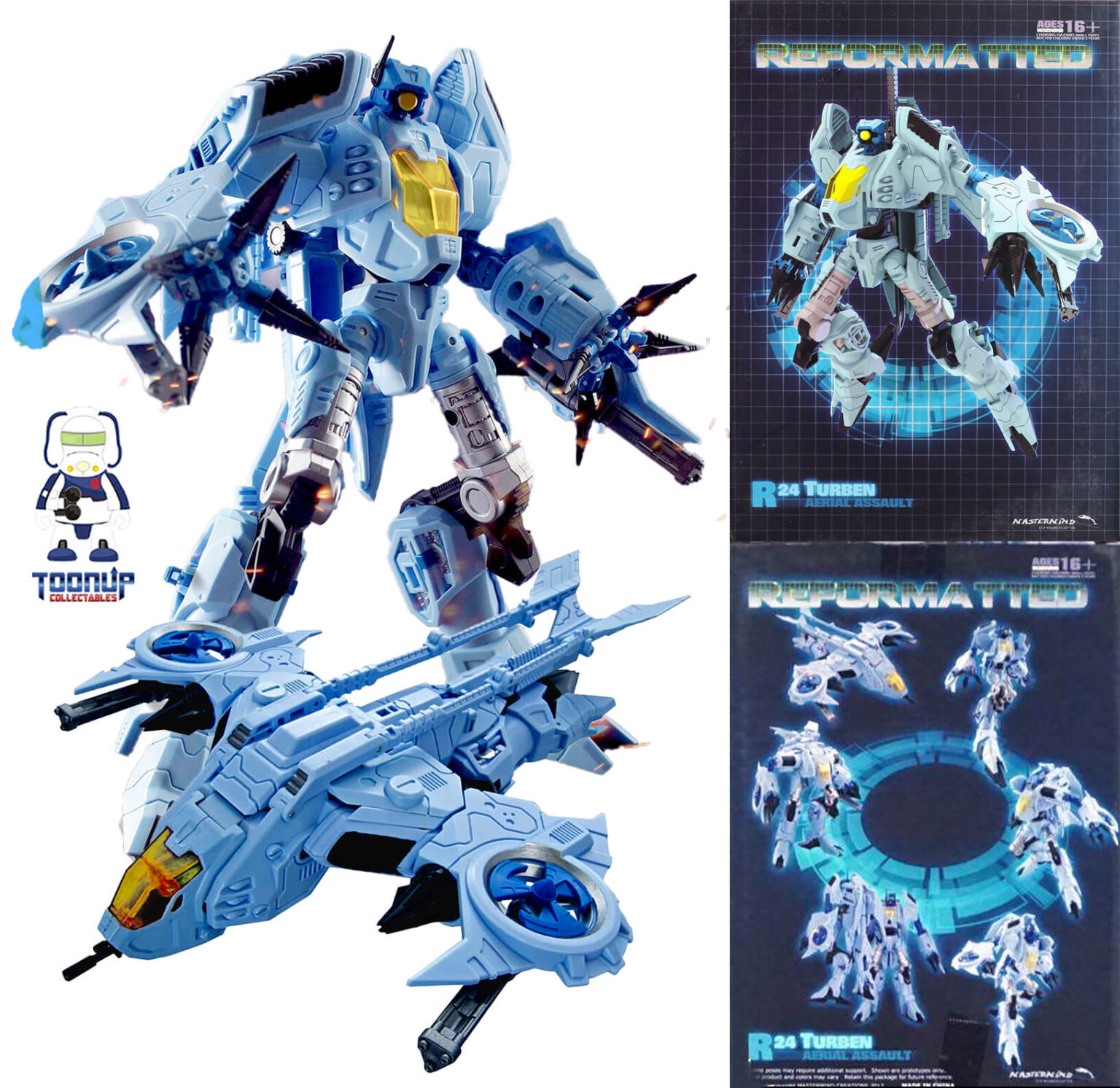 R-24 Turben is a Reformatted Scale figure that is approximately Reformatted Scale Scale, stands 8-inches tall in robot mode and transforms from Aircraft to robot and back.